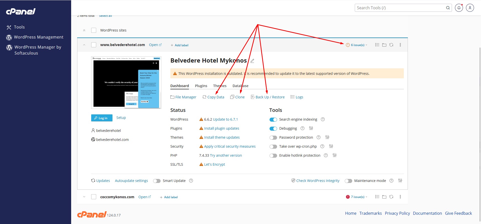 Here are some of the most important functions of WP-Toolkit, which is available in all our cPanel Accounts.